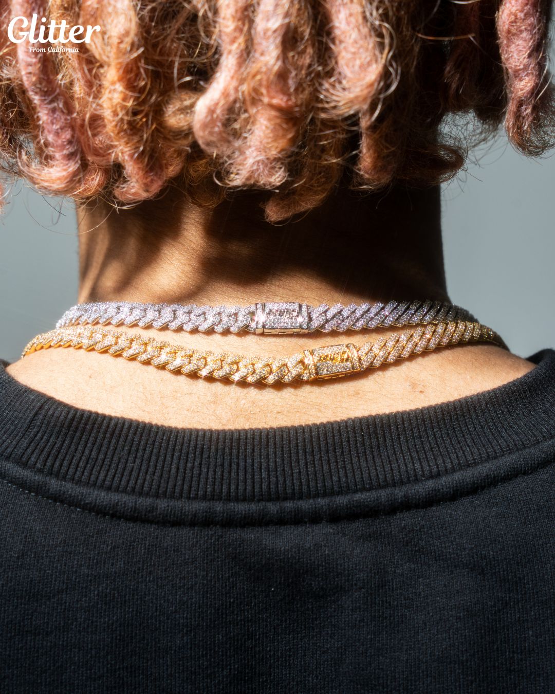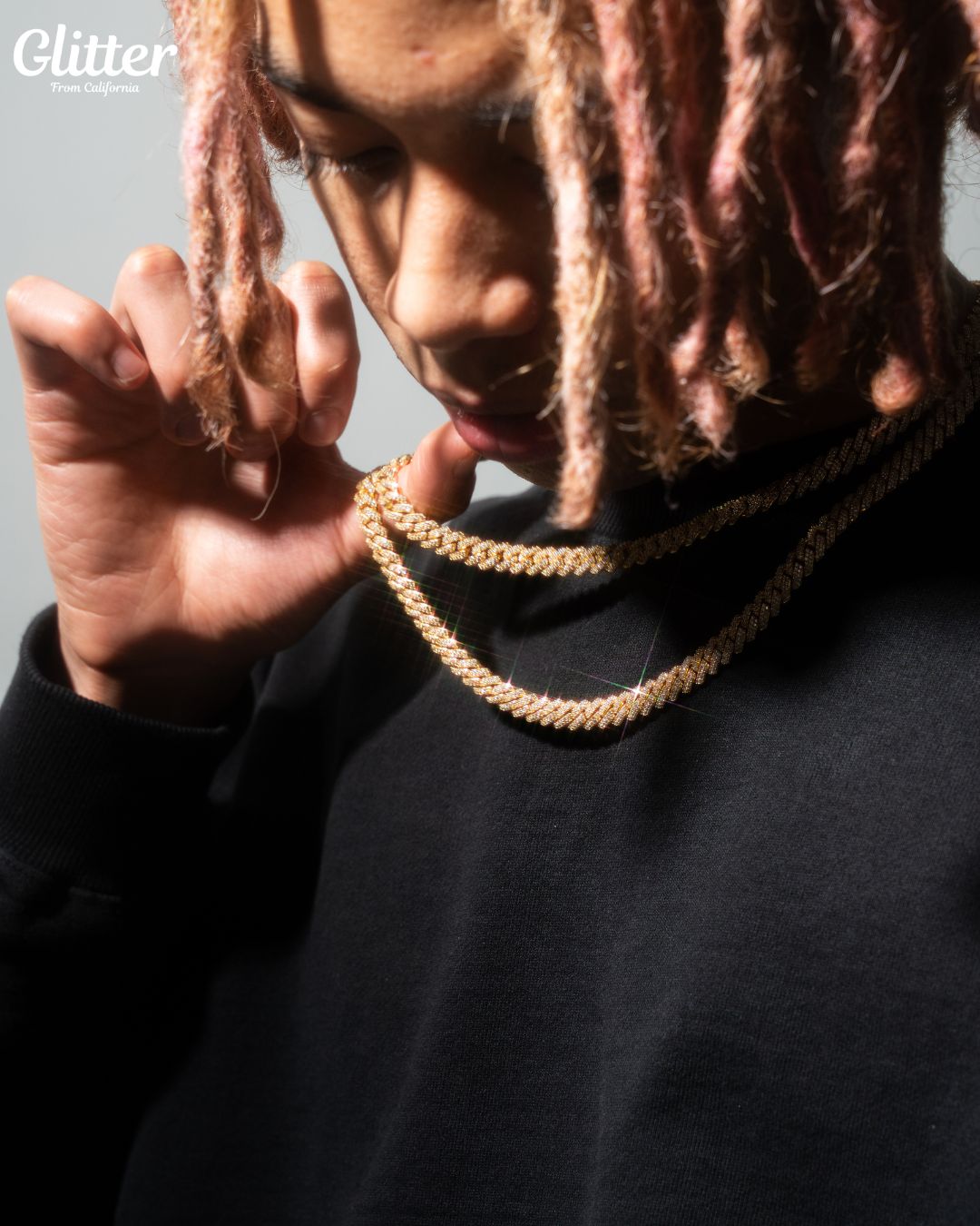 トレンド入りしている、細身タイプのIced Out Prong ChainをGlitterのオリジナルデザインにてご用意致しました✨